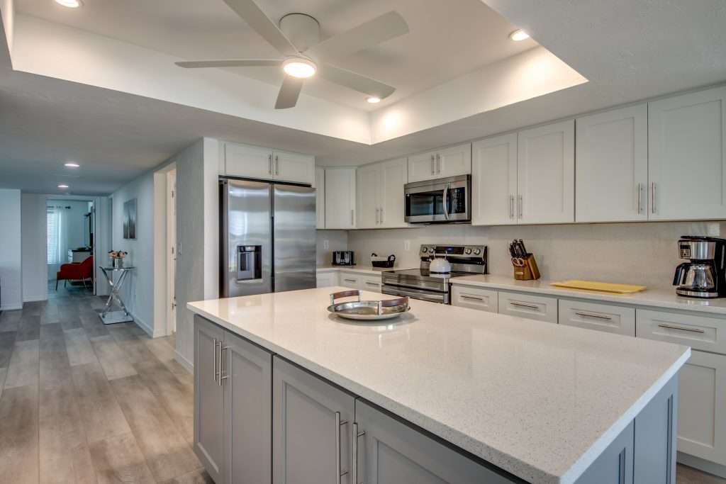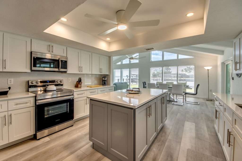 Das Riverhaus ist neu möbliert im hellen, eleganten Beachhouse Stil. 4 einladende Schlafzimmer, davon 1 Kingzimmer, 2 Queenzimmer und 1 Mastersuite mit 2 Queenbetten, 3 Badezimmer, große Küche und 2 Wohnbereiche mit TV.